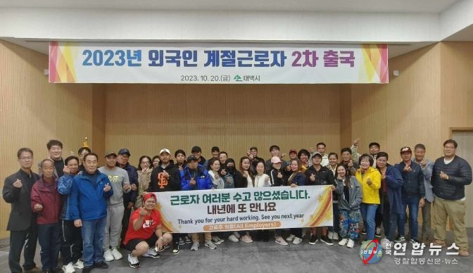 전국연합뉴스 권찬규 기자 | 태백시는 지난 20일 2023년 농번기 일손이 부족한 농가에 큰 도움을 주고 고국으로 돌아가는 외국인 계절근로자를 위한 환송행사를 가졌다.