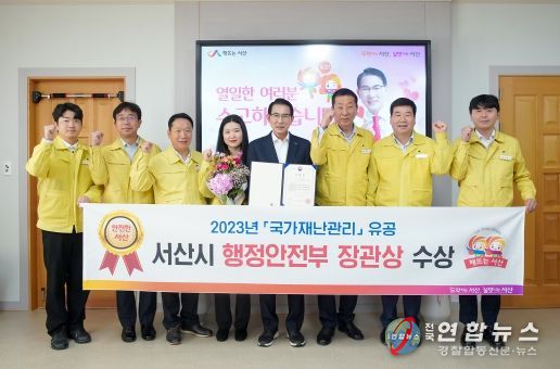 전국연합뉴스 김용태 기자 | 충남 서산시가 행정안전부에서 주관하는 2023년 국가재난관리 유공에서 행정안전부 장관 표창을 받았다.