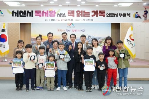 전국연합뉴스 김용태 기자 | 충남 서산시가 독서문화 확산을 위해 27일 서산시청 대회의실에서 올해의 ‘독서왕’과 ‘책읽는가족’을 선정해 시상식을 진행했다.