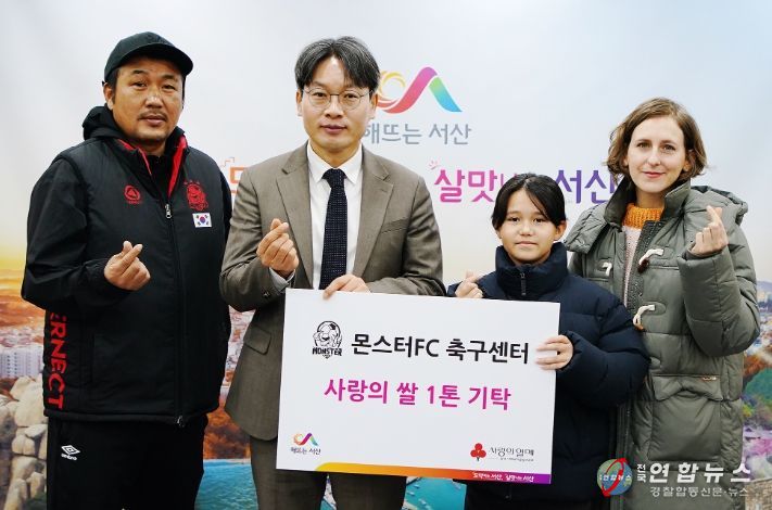 전국연합뉴스 김용태 기자 | 충남 서산시는 지난 28일 몬스터FC 축구센터에서 어려운 이웃을 위한 사랑의 쌀 1톤과 이웃돕기 성금 1백만 원을 기탁했다고 밝혔다.