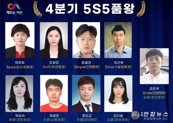 전국연합뉴스 김용태 기자 | 충남 서산시가 자체 행정혁신 운동인‘5S5품’실천으로 시민 체감형 성과를 창출한 공무원 9명을 4분기‘5S5품왕’으로 선발했다.