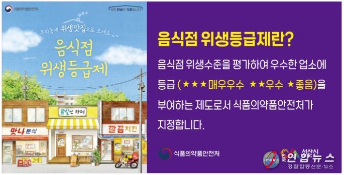 전국연합뉴스 김용태 기자 | 충남 서산시가 시민들이 안심하고 이용할 수 있는 외식환경을 조성하기 위해 관내 일반‧휴게음식점과 제과점을 대상으로 ‘음식점 위생등급제’ 참여 업소를 추가 모집한다.
