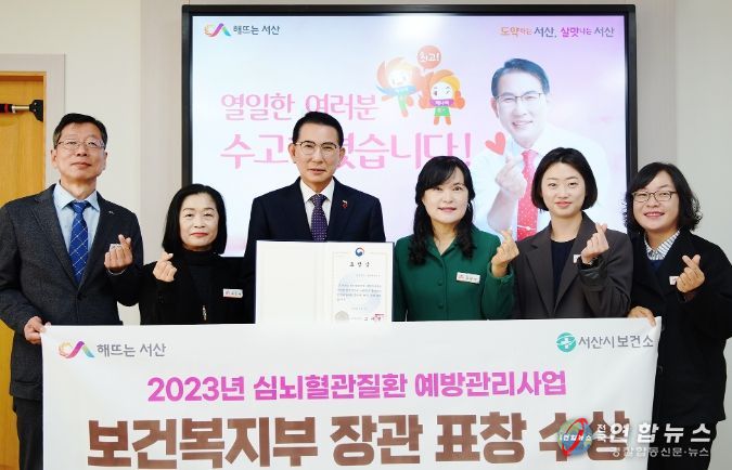 전국연합뉴스 김용태 기자 | 충남 서산시는 지난 7일 심뇌혈관질환 예방 및 관리를 위한 탁월한 노력으로 보건복지부장관 표창을 수상했다고 밝혔다.