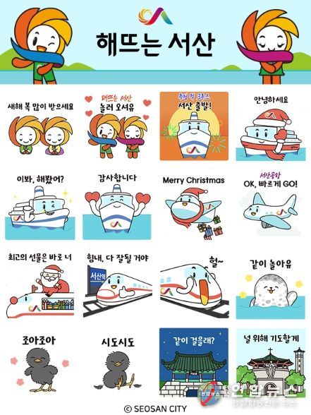 전국연합뉴스 김용태 기자 | 충남 서산시는 시 주요 역점사업, 마스코트, 관광자원을 카카오톡 이모티콘으로 표현한 ‘이모티콘 서산’을 제작하고 12월 18일 오후 2시부터 2만 5천 명에게 선착순으로 배포한다고 14일 밝혔다.