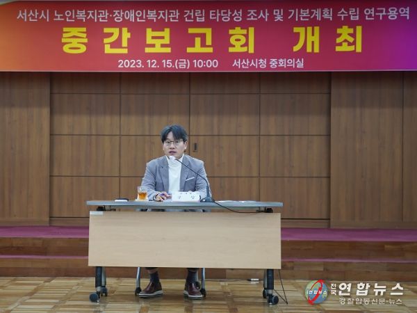 시는 15일 구상 부시장과 관련 공무원, 용역 연구진, 노인‧장애인 단체 등 25명이 참석한 가운데 시청 중회의실에서 ‘서산시 노인복지관‧장애인복지관 건립 타당성 조사 및 기본계획 수립 연구용역’의 중간보고회를 개최했다고 밝혔다.