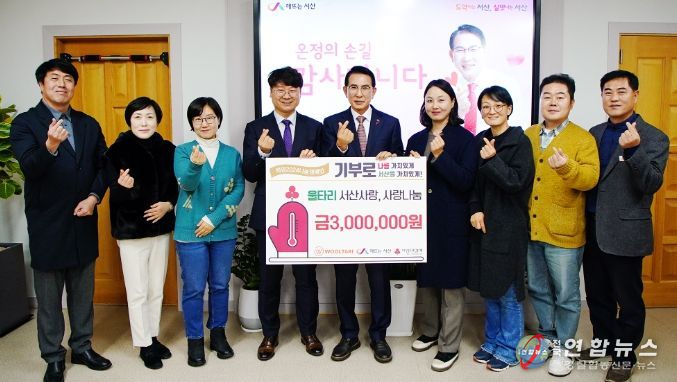 전국연합뉴스 김용태 기자 | 충남 서산시는 ㈜울타리에서 27일 서산시에 3백만 원을 기탁했다고 밝혔다.