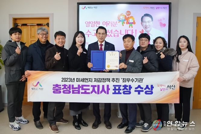 전국연합뉴스 김용태 기자 | 서산시가 충남도에서 유일하게 미세먼지 저감 정책 추진 업무 유공 ‘최우수 기관’으로 선정돼 도지사 표창을 받았다.