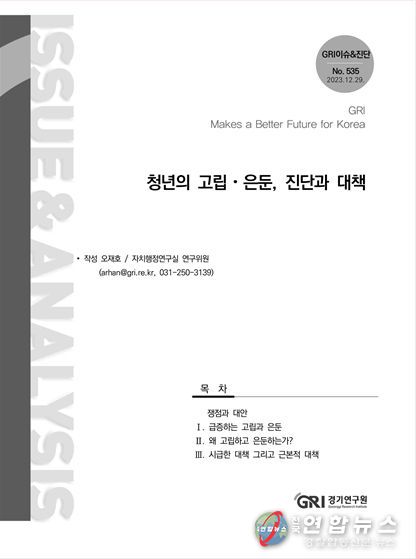 경기연구원은 이러한 내용을 담은 ‘청년의 고립·은둔, 진단과 대책’ 보고서를 발간했다고 9일 밝혔다.