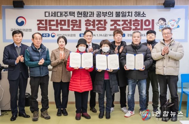 이를 토대로 지난 26일에 주민(신청인), 강동구, 국민권익위원회(부위원장 김태규), 등이 직접 다세대주택 2곳의 현장을 확인했고, 조정회의를 거쳐 최종적으로 조정서에 서명날인했다.