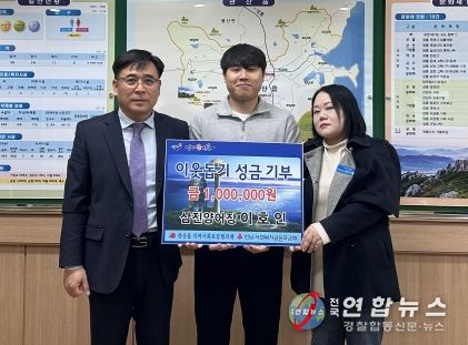 이호인 삼진양어장 대표가 “아버지의 뜻을 이어받아 지역주민에 조금이라도 힘을 보태고 싶었다”며 100만원을 기부했다.