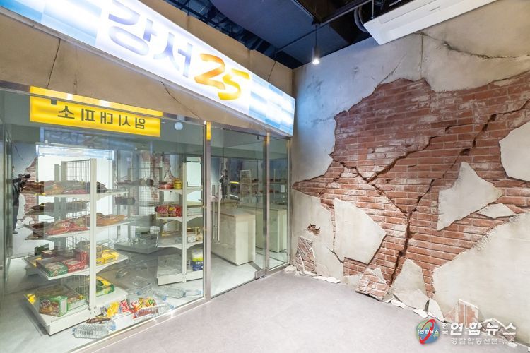 지진 피해 현장 등을 실감 나게 재현해 놓은 재난안전 체험존은 지진 상황을 직접 느껴볼 수 있는 자연재난안전 체험실과 소화기, 완강기 체험을 할 수 있는 화재안전 체험실, 태풍의 위력을 경험해 볼 수 있는 풍수해 안전 체험실로 구성됐다.