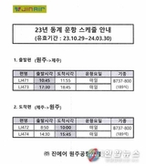 원주공항 '제주 가는 하늘길' 오전 시간대 편성