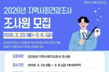 천안시, 2026년 지역사회건강조사 조사원 모집