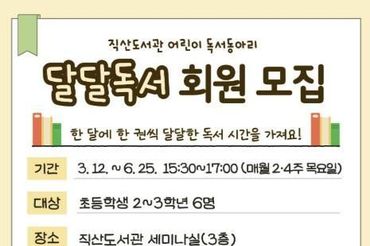천안직산도서관, 어린이 독서동아리 '달달독서' 참여자 모집