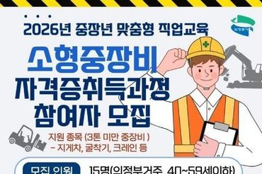 의정부시, 소형중장비 자격증 취득과정 참여자 모집