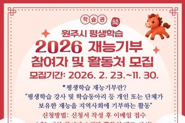 원주시 학습관, 평생학습 재능기부 참여자·활동처 모집