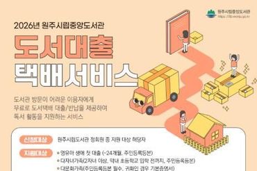 원주시립중앙도서관, 도서대출 택배서비스 지원 대상에 '한부모가족' 추가