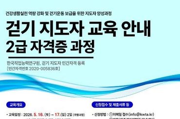 원주시보건소, 상반기 걷기지도자 2급 과정 수강생 모집