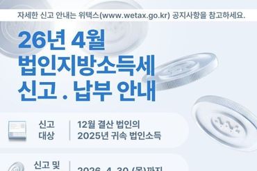 옹진군, 4월은 법인지방소득세 신고․납부의 달입니다.