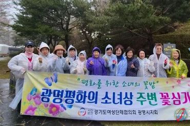 광명시 여성단체협의회, 평화의 소녀상 꽃밭에 봄꽃 식재 행사