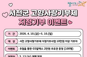 서천군, 고향사랑기부제 지정기부사업 이벤트 실시