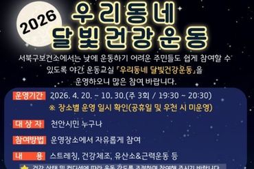 천안시, 오는 20일부터 ‘우리동네 달빛건강운동’ 운영