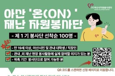 아산시, '온(ON) 재난봉사단' 1기 출범… 자원봉사자 100명 선착순모집