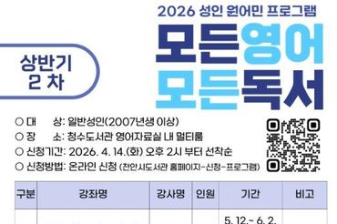 천안청수도서관, ‘모든 영어 모든 독서’ 수강생 모집