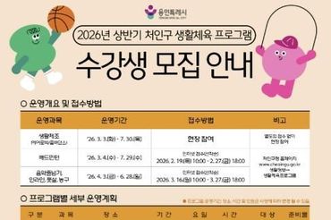 용인특례시 처인구, 2026년 생활체육 프로그램 개강