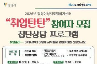 광명시, 취업 희망하는 여성 지원한다… ‘취업탄탄’ 집단상담으로 첫걸음 지원