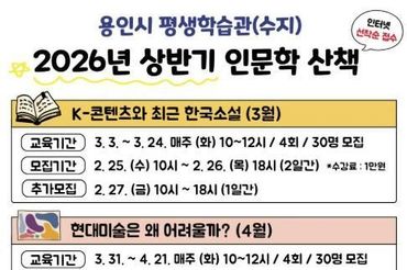 용인특례시, 평생학습관 인문학 산책 수강생 모집