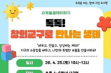 천안직산도서관, 오는 25일 ‘톡톡! 창의교구로 만나는 생태’ 운영