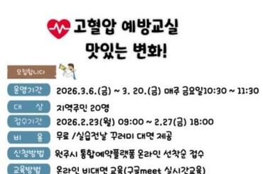 원주시 동부복합생활지원센터, 고혈압 예방 요리교실 '맛있는 밥상' 참여자 모집