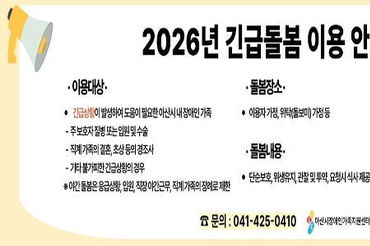아산시, 중증장애인 긴급돌봄 서비스 확대… 돌봄 공백 해소