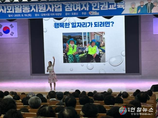 전국연합뉴스 최성용 기자 | 김제시는 지난 19일 시청 대강당에서 노인사회활동지원사업 참여 어르신 300명을 대상으로 인권교육을 실시했다고 밝혔다.