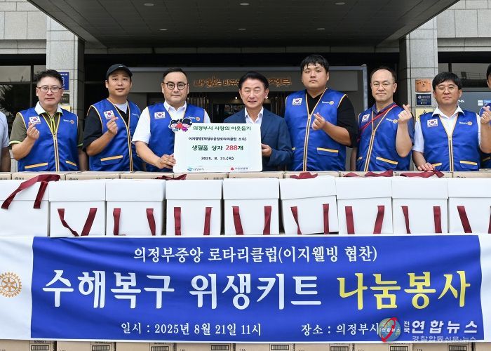 전국연합뉴스 박점규 기자 | 의정부시는 8월 21일 의정부중앙로타리클럽 소속 이지웰빙이 수해 피해 가구와 저소득층 가정을 위한 생필품 상자 288개(1천580만 원 상당)를 기부했다고 밝혔다.