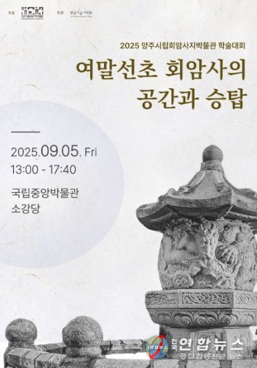 전국연합뉴스 박점규 기자 | 양주시립회암사지박물관은 9월 5일 국립중앙박물관 소강당에서 '여말선초 회암사의 공간과 승탑' 학술대회를 개최한다.