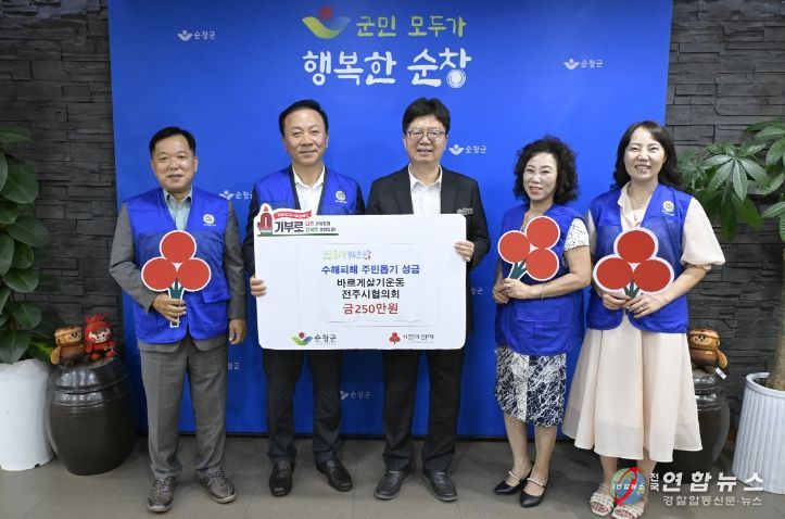 전국연합뉴스 김현호 기자 | 바르게살기운동 전주시협의회(회장장성태)는 지난 22일 순창군을 방문해 수해로 피해를 입은 주민을 돕기 위한 성금 250만원을 기탁했다.