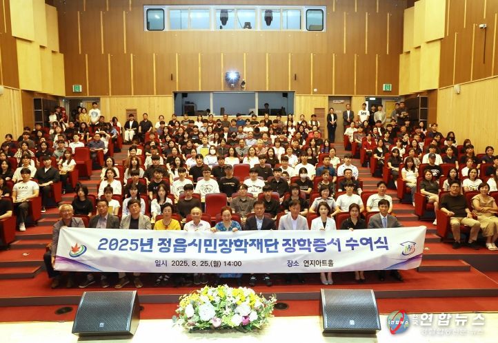 전국연합뉴스 최성용 기자 | 정읍시민장학재단이 지난 25일 연지아트홀에서 ‘2025년 정읍시민장학재단 장학생 장학증서 수여식’을 열고 장학생 190명에게 총 4억 원을 전달했다.