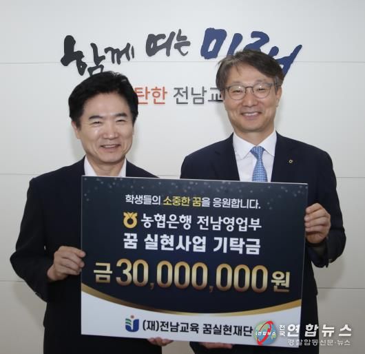 전국연합뉴스 기자 | NH농협은행 전남본부는 25일 (재)전남교육 꿈실현재단에 ‘해외 봉사 교육 지원’을 위한 기탁금 3,000만 원을 전달했다.