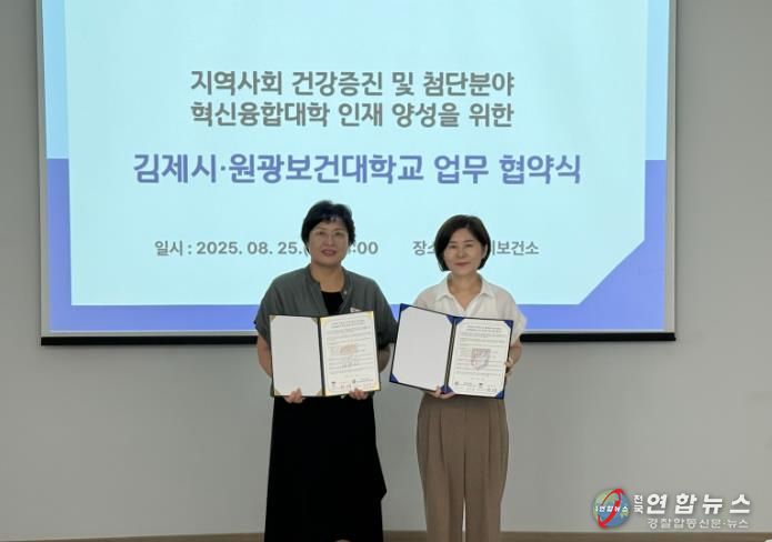 전국연합뉴스 김현호 기자 | 김제시는 원광보건대학교 바이오헬스 혁신 융합대학 사업단과 지역사회 건강 증진과 바이오헬스 분야 상호 협력을 목적으로 지난 25일 업무 협약을 체결했다고 밝혔다.