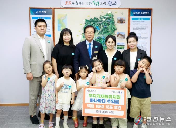 전국연합뉴스 최성용 기자 | 완주군 봉동읍에 위치한 무지개재능유치원이 아나바다 장터 운영을 통해 얻은 수익금으로 마련한 68만 4,000원 상당의 쌀 18포를 완주군에 전달하며 따뜻한 나눔을 실천했다.