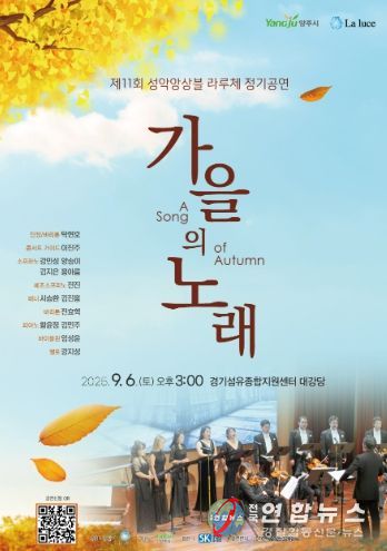 전국연합뉴스 박점규 기자 | 양주시를 기반으로 활발히 활동 중인 성악앙상블 라루체(La luce)가 오는 9월 6일 오후 3시에 경기섬유종합지원센터 대강당에서 제11회 정기공연 ‘가을의 노래(A SONG OF Autumn)’를 개최한다.