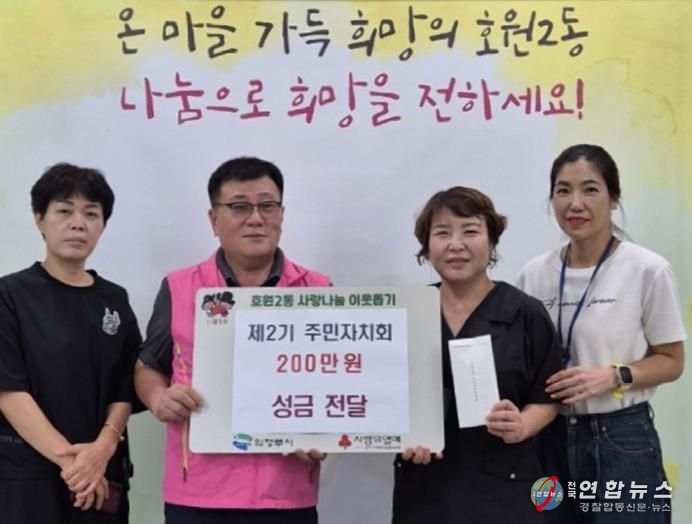 전국연합뉴스 박점규 기자 | 의정부시 호원2동주민센터는 8월 25일 호원2동 주민자치회가 제2기 임기를 마무리하며 어려운 이웃을 돕기 위한 성금 200만 원을 기탁했다고 밝혔다.