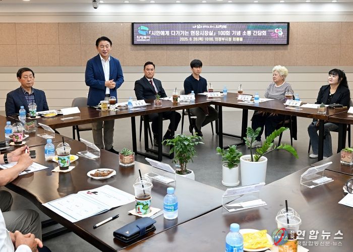 전국연합뉴스 박점규 기자 | 의정부시는 ‘시민에게 다가가는 현장시장실’ 100회를 맞아 8월 28일 시청 회룡홀에서 소통 간담회를 열고, 지난 4년간 이어온 현장 소통의 발자취를 돌아보는 시간을 가졌다.