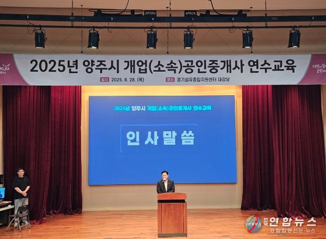 전국연합뉴스 박점규 기자 | 양주시는 지난 28일 경기섬유종합지원센터 대강당에서 관내 개업·소속 공인중개사 180여 명을 대상으로 ‘2025년 공인중개사 연수교육’을 실시했다.