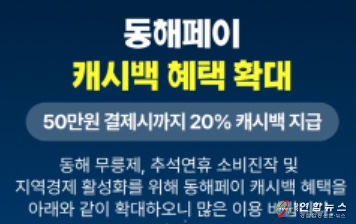 전국연합뉴스 김생수 기자 | 동해시는 고물가와 경기 침체로 인한 시민들의 경제적 부담을 덜고 지역경제에 활력을 불어넣기 위해, 오는 9월 1일부터 10월 31일까지 두 달간 동해페이 인센티브 지급률을 기존 10%에서 최대 20%로 특별 상향한다고 27일 밝혔다.