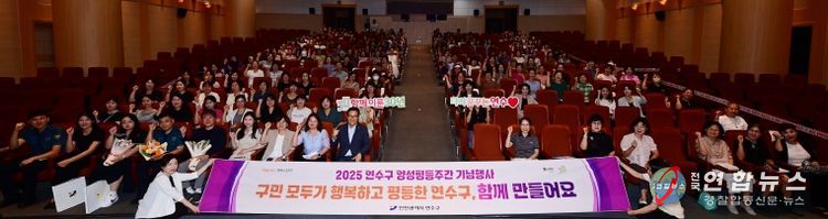 전국연합뉴스 박우배 기자 | 연수구는 지난 1일 연수아트홀에서 ‘구민 모두가 평등하고 행복한 연수구’를 주제로 양성평등정책에 대한 구민의 관심을 제고하고 양성평등 문화 확산을 위한 기념행사를 개최했다.