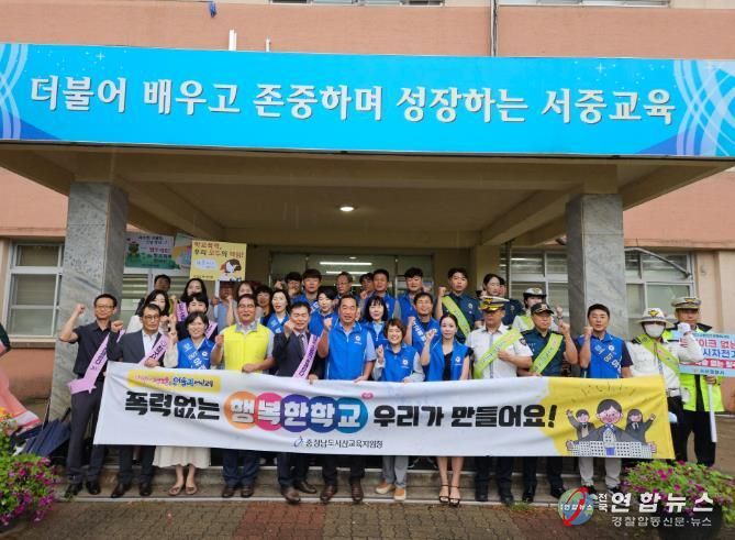 이번 지역합동 학교폭력 예방 캠페인은 서산교육지원청 주관으로 9월 4일 아침 서산중학교에서 진행됐으며 서산경찰서, 법무부 청소년범죄예방위원회 서산지구, 서산시 녹색어머니회, 서산중학교 교직원들이 동참했다.