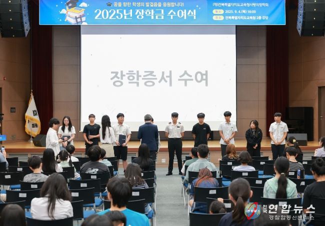 전국연합뉴스 기자 | (재)전북특별자치도교육청사랑의장학회는 4일 전북특별자치도교육청 2층 강당에서 2025년 장학금 수여식을 개최했다.